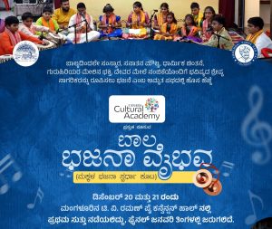 ಮಂಗಳೂರು: ಭಜನೆಯ ಮೂಲಕ ಯುವ ಪೀಳಿಗೆಯಲ್ಲಿ ಭಕ್ತಿ ಮತ್ತು ಸಂಸ್ಕೃತಿಯ ಬೀಜವನ್ನು ಬಿತ್ತುವ ಉದ್ದೇಶದೊಂದಿಗೆ “ಬಾಲ ಭಜನಾ ವೈಭವ” ಸ್ಪರ್ಧೆಯನ್ನು ಕೆನರಾ ಹೈಸ್ಕೂಲ್ ಅಸೋಸಿಯೇಶನ್ ಇದರ ಕೆನರಾ ಕಲ್ಚರಲ್ ಅಕಾಡೆಮಿ ಆಶ್ರಯದಲ್ಲಿ ಡಿಸೆಂಬರ್ 20 ಹಾಗೂ 21 ರಂದು ಮಂಗಳೂರಿನ ಟಿ ವಿ ರಮಣ್ ಪೈ ಕನ್ವೆನ್ಷನ್ ಹಾಲ್ ನಲ್ಲಿ ಆಯೋಜಿಸಲಾಗಿದೆ.