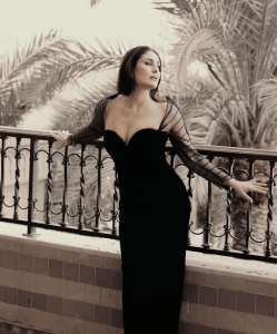 ರಿಯಾ ಕಪೂರ್ ಈ ಗೌನ್ನ್ನು ಅತಿ ಕಡಿಮೆ ಆಭರಣಗಳೊಂದಿಗೆ ರೂಪಿಸಿದ್ದು, ಗಮನ ಪೂರ್ಣವಾಗಿ ಗೌನ್ ಮೇಲೆಯೇ ಇರುತ್ತದೆ. ಮೆಹ್ತಾ ಅಂಡ್ ಸನ್ಸ್ನ ಸರಳ ಕಿವಿಯೋಲೆಗಳು ಮತ್ತು ಇವ್ ಸಾಂಟ್ ಲಾರೆಂಟ್ನ ಕಪ್ಪು ಹೀಲ್ಸ್ ಮೂಲಕ ಸ್ಟೈಲ್ಗೆ ಕ್ಲಾಸಿ ಟಚ್ ನೀಡಿದ್ದಾರೆ.
