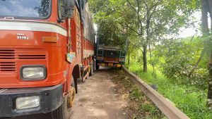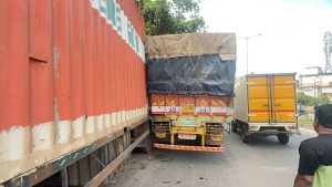 ಇದೇ ಸಂದರ್ಭದಲ್ಲಿ ಕಂಟೈನರ್ ಲಾರಿಯೊಂದು ಬಂದಿದ್ದು, ಎದುರು ನಿಂತ ಲಾರಿ ಕೆಟ್ಟು ನಿಂತಿರುವುದು ಅರಿವಿಗೆ ಬಾರದೆ ಲಾರಿಯನ್ನು ನಿಂತಿದ್ದ ಲಾರಿಯ ಇನ್ನೊಂದು ಬದಿಗೆ ಅದರ ಡ್ರೈವರ್ ನುಗ್ಗಿಸಿದ್ದಾನೆ. ಇದರಿಂದ ಲಾರಿ ತಡೆಗೋಡೆಗೆ ಸಿಲುಕಿ ಪಕ್ಕದಲ್ಲಿಯೇ ಢಿಕ್ಕಿ ಹೊಡೆದು ರಸ್ತೆ ಬದಿಗೆ ನಿಂತಿದ್ದು, ವಾಹನಗಳು ಸಾಗಲಾಗದೆ ಟ್ರಾಫಿಕ್ ಜಾಂ ಉಂಟಾಗಿದೆ.