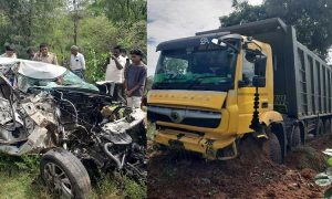 ಗುಂಡ್ಲುಪೇಟೆ : ಮೈಸೂರು-ಗುಂಡ್ಲುಪೇಟೆ ರಾಷ್ಟ್ರೀಯ ಹೆದ್ದಾರಿ-766ರ ಮಾದಪಟ್ಟಣ ಗೇಟ್ ಬಳಿ ಟಿಪ್ಪರ್ ಹಾಗೂ ಕಾರಿನ ನಡುವೆ ಸಂಭವಿಸಿದ ಭೀಕರ ರಸ್ತೆ ಅಪಘಾತದಲ್ಲಿ ಕಾರಿನಲ್ಲಿದ್ದ ಕೇರಳ ಮೂಲದ ಇಬ್ಬರು ಸ್ಥಳದಲ್ಲೇ ಮೃತಪಟ್ಟಿದ್ದು, ಮಗು ಸೇರಿ ಮೂವರು ತೀವ್ರವಾಗಿ ಗಾಯಗೊಂಡಿರುವ ಘಟನೆ ಇಂದು (ಅ.25) ಬೆಳಗ್ಗೆ ನಡೆದಿದೆ.