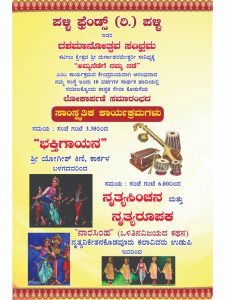 ಕಟೀಲು ಕ್ಷೇತ್ರದ ಶ್ರೀ ದುರ್ಗಾಪರಮೇಶ್ವರಿ ಸಾನಿಧ್ಯದಲ್ಲಿ ʻಅಮ್ಮನೆಡೆಗೆ ನಮ್ಮ ನಡೆʼ ಎಂಬ ಧ್ಯೇಯದೊಂದಿಗೆ ಆರಂಭವಾದ ಪಳ್ಳಿ ಫ್ರೆಂಡ್ಸ್ ಸಂಸ್ಥೆ ಇಂದು 10 ವರ್ಷಗಳ ಸಾರ್ಥಕ ಸೇವಾ ಪಥದಲ್ಲಿದೆ. ಈ ದಶಮಾನೋತ್ಸವ ಕಾರ್ಯಕ್ರಮದ ಅಂಗವಾಗಿ ಸಾಂಸ್ಕೃತಿಕ ಕಾರ್ಯಕ್ರಮಗಳೂ ಏರ್ಪಡಿಸಲಾಗಿದ್ದು, ಮಧ್ಯಾಹ್ನ 3.30ಕ್ಕೆ “ಭಕ್ತಿಗಾಯನ” ಶ್ರೀ ಯೋಗೀಶ್ ಕಿಣಿ, ಕಾರ್ಕಳ ಬಾಳಗದಿಂದ ನಡೆಯಲಿದ್ದು, ಸಂಜೆ 6 ಗಂಟೆಯಿಂದ ನೃತ್ಯಸಿಂಚನ ಹಾಗೂ ನೃತ್ಯರೂಪಕ “ನಾರಸಿಂಹ” (ಒಳಿತಿನ ವಿಜಯದ ಕಥನ) ಉಡುಪಿ ನೃತ್ಯನಿಕೇತನ ಕೊಡವೂರು ಕಲಾವಿದರಿಂದ ಪ್ರದರ್ಶನಗೊಳ್ಳಲಿದೆ.