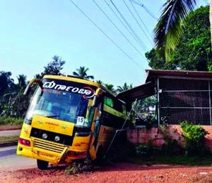 ಉಡುಪಿ ದಿಕ್ಕಿನಿಂದ ಹಿರಿಯಡ್ಕ ಕಡೆಗೆ ಸಾಗುತ್ತಿದ್ದ ದುರ್ಗಾಂಬಾ ಕಂಪೆನಿಯ ಸ್ಲೀಪರ್ ಬಸ್ಸು, ಚಾಲನೆಯ ಸಮಯದಲ್ಲಿ ನಿಯಂತ್ರಣ ತಪ್ಪಿ ಶಮಿತ್ ಹೋಟೆಲ್ ಆವರಣಕ್ಕೆ ನೇರವಾಗಿ ನುಗ್ಗಿದೆ. ನಂತರ ಬಸ್ ಹೋಟೆಲ್ನ ಮಾಡಿಗೆ ತಾಗಿ ವಾಲಿಕೊಂಡು ನಿಂತಿದ್ದು, ಸ್ಥಳದಲ್ಲಿ ಕೆಲ ಕ್ಷಣ ಭೀತಿಯ ವಾತಾವರಣ ನಿರ್ಮಾಣಗೊಂಡಿತು.