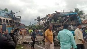 ತೆಂಕಸಿ (ತಮಿಳುನಾಡು): ತೆಂಕಸಿ ಜಿಲ್ಲೆಯಲ್ಲಿ ಸೋಮವಾರ ಎರಡು ಖಾಸಗಿ ಬಸ್ಗಳು ಮುಖಾಮುಖಿ ಢಿಕ್ಕಿ ಹೊಡೆದ ಪರಿಣಾಮ ಆರು ಮಂದಿ ಸಾವನ್ನಪ್ಪಿದ್ದು, 28 ಮಂದಿ ಗಾಯಗೊಂಡಿದ್ದಾರೆ. ಮಧುರೈನಿಂದ ಸೆಂಕೊಟ್ಟೈಗೆ ತೆರಳುತ್ತಿದ್ದ ಬಸ್ ಹಾಗೂ ತೆಂಕಸಿಯಿಂದ ಕೋವಿಲ್ಪಟ್ಟಿ ಕಡೆಗೆ ಬರುತ್ತಿದ್ದ ಇನ್ನೊಂದು ಬಸ್ ನಡುವೆ ಅಪಘಾತ ಸಂಭವಿಸಿದೆ.