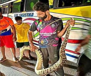 ಪುತ್ತೂರಿನಿಂದ ಹೆಬ್ರಿ ಕಡೆಗೆ ಹೋಗುತ್ತಿದ್ದ ಬಸ್, ಕಾಫಿ ವಿರಾಮಕ್ಕಾಗಿ ಹೋಟೆಲ್ ಬಳಿ ನಿಂತಿತ್ತು. ಪ್ರಯಾಣಿಕರು ಇಳಿದ ನಂತರ, ಚಾಲಕ ವಾಹನದೊಳಗೆ ಪರಿಶೀಲಿಸಿದಾಗ ಹೆಬ್ಬಾವು ಸದ್ದಿಲ್ಲದೆ ಮಲಗಿರುವುದನ್ನು ಗಮನಿಸಿದರು. ಪಡುಕೊಣಾಜೆಯ ಉರಗ ರಕ್ಷಕ ಗಡ್ಡೆ ದಿನೇಶ್ ಅವರು ಹಾವನ್ನು ಸುರಕ್ಷಿತವಾಗಿ ಹಿಡಿದು ಸ್ಥಳಾಂತರಿಸಿದರು.