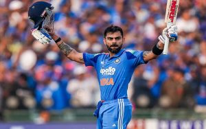 ನವೆಂಬರ್ 30ರಂದು ರಾಂಚಿಯಲ್ಲಿ ನಡೆದ ಮೊದಲ ಪಂದ್ಯದಲ್ಲಿಯೂ ಮೂರಂಕಿ ದಾಟಿದ್ದ ಕೊಹ್ಲಿ, 11ನೇ ಬಾರಿ ಏಕದಿನ ಕ್ರಿಕೆಟ್ನಲ್ಲಿ ಈ ರೀತಿ ಸತತ ಶತಕ ಸಿಡಿಸಿದ್ದು “ಮಿಸ್ಟರ್ 360” ಖ್ಯಾತಿ ಎಬಿ ಡಿ ವಿಲಿಯರ್ಸ್ 6 ಸಲ ಇಂತಹ ಸಾಧನೆ ಮಾಡಿ ಎರಡನೇ ಸ್ಥಾನದಲ್ಲಿದ್ದಾರೆ.