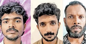 ಜೆ. ರಂಜಾನ್ ಸುಲ್ತಾನ್ ಬಶೀರ್ (25), ಟಿ.ಎಚ್. ಹಮ್ನಾಸ್ (24), ತಲಂಕರ ಹಾಗೂ ಪಿ.ಕೆ. ಅಜರುದ್ದೀನ್ (36), ಪಾಲಕ್ಕಾಡ್ ಬಂಧಿತ ಆರೋಪಿಗಳು. ವಿದ್ಯಾನಗರ ಇನ್ಸ್ಪೆಕ್ಟರ್ ಪಿ.ಕೆ. ಶೈನ್ ನೇತೃತ್ವದ ತಂಡ ಆರೋಪಿಗಳನ್ನು ಬಂಧಿಸಿ ನ್ಯಾಯಾಲಯಕ್ಕೆ ಹಾಜರುಪಡಿಸಿದೆ.