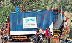 ಸುಳ್ಯ: ಎಂಜಿನ್ ವೈಫಲ್ಯದಿಂದ ರಸ್ತೆಯಲ್ಲೇ ಬಾಕಿ ಆಗಿದ್ದ ಬೃಹತ್ ಟ್ರಕ್ ಅನ್ನು ಬದಿಗೆ ಸರಿಸುವ ವೇಳೆ ಆಟೋರಿಕ್ಷಾಕ್ಕೆ ಢಿಕ್ಕಿ ಹೊಡೆದ ಘಟನೆ ಬೆಳ್ಳಾರೆಯ ನಿಂತಿಕಲ್ಲು ರಸ್ತೆಯ ಪಂಜಿಗಾರು ಪೆಟ್ರೋಲ್ ಬಂಕ್ ಬಳಿ ರವಿವಾರ(ಡಿ 21) ನಡೆದಿದೆ.