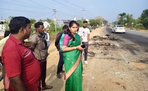 ಬಸ್ ಹಾಗೂ ಲಾರಿ ಮಧ್ಯೆ ಅಪಘಾತ ಸಂಭವಿಸಿದ ಸ್ಥಳಕ್ಕೆ ಬುಧವಾರ ಜಿಲ್ಲಾಧಿಕಾರಿ ಶ್ರೀರೂಪಾ ಭೇಟಿ ನೀಡಿ ಪರಿಶೀಲಿಸಿದರು. ಅಪಘಾತದಲ್ಲಿ ಮೃತಪಟ್ಟ ಹಾಗೂ ಗಾಯಗೊಂಡವರ ಮಾಹಿತಿ ಪಡೆದುಕೊಂಡು ಜಿಲ್ಲಾಧಿಕಾರಿ ಬೆಂಡರವಾಡಿ ಗ್ರಾಮಸ್ಥರ ಬಳಿ ಮಾಹಿತಿ ಪಡೆದುಕೊಂಡರು. ಗ್ರಾಮಸ್ಥರ ದೂರಿನಂತೆ ಮುಂದೆ ಅಪಘಾತಗಳು ಸಂಭವಿಸಿದಂತೆ ಅಗತ್ಯ ಸುರಕ್ಷತಾ ಕ್ರಮಗಳನ್ನು ತೆಗೆದುಕೊಳ್ಳುವಂತೆ ಲೋಕೋಪಯೋಗಿ ಇಲಾಖೆ ಅಧಿಕಾರಿಗಳಿಗೆ ಜಿಲ್ಲಾಧಿಕಾರಿ ಶ್ರೀರೂಪಾ ಸೂಚನೆ ನೀಡಿದರು.