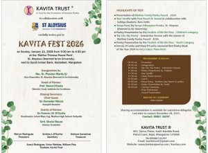 ಮಂಗಳೂರು: ಕೊಂಕಣಿ ಕಾವ್ಯದ ಸ್ಥಾನಮಾನವನ್ನು ಗಣನೀಯವಾಗಿ ಹೆಚ್ಚಿಸಿರುವ ಕವಿತಾ ಟ್ರಸ್ಟ್, ಈ ವರ್ಷ ತನ್ನ ಇಪ್ಪತ್ತನೇ “ಕವಿತಾ ಫೆಸ್ತ್” ಹಬ್ಬವನ್ನು ಆಚರಿಸುತ್ತಿದೆ. ಈ ಉತ್ಸವವು ಭಾನುವಾರ(ಜ.11) ಬೆಳಿಗ್ಗೆ 9:30 ರಿಂದ ಸಂಜೆ 4:30 ರವರೆಗೆ ಸಂತ ಅಲೋಶಿಯಸ್ (ಪರಿಗಣಿತ ವಿಶ್ವವಿದ್ಯಾಲಯ)ನಲ್ಲಿರುವ ಮದರ್ ತೆರೇಸಾ ಪೀಸ್ ಪಾರ್ಕ್ನಲ್ಲಿ ನಡೆಯಲಿದೆ. ಕೊಂಕಣಿ ಭಾಷೆಯ ಬಗ್ಗೆ ಉತ್ಸಾಹ ಹೊಂದಿರುವ ಯಾರಾದರೂ ಈ ಉತ್ಸವದಲ್ಲಿ ಭಾಗವಹಿಸಬಹುದು.