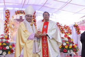 ಬಿಷಪ್ ಡಾ. ದುಮಿಂಗ್ ಡಾಯಸ್ ಅವರು ಪುಣ್ಯಕ್ಷೇತ್ರಕ್ಕೆ ನೀಡಿದ ಚೊಚ್ಚಲ ಭೇಟಿಯ ಸ್ಮರಣಾರ್ಥವಾಗಿ, ಸಂತ ಜೋಸೆಫ್ ಆಶ್ರಮದ ಸುಪೀರಿಯರ್ ವಂ. ಮೆಲ್ವಿನ್ ಡಿ’ಕುನ್ಹಾ ಅವರು ಬಿಷಪರಿಗೆ ಬಾಲ ಯೇಸುವಿನ ಪ್ರತಿಮೆಯನ್ನು ನೀಡಿ ಗೌರವಿಸಿದರು.