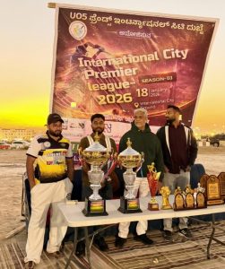 ದುಬೈ : U05 ಫ್ರೆಂಡ್ಸ್ ದುಬೈ ಆಯೋಜಿಸಿದ ಇಂಟರ್ನ್ಯಾಷನಲ್ ಸಿಟಿ ಪ್ರೀಮಿಯರ್ ಲೀಗ್-2026 ಸೀಸನ್ 3 ಪಂದ್ಯಾಟ ಬಹಳ ಅದ್ದೂರಿಯಾಗಿ ದುಬೈ ಇಂಟರ್ನ್ಯಾಷನಲ್ ಸಿಟಿ ಮೈದಾನದಲ್ಲಿ ನಡೆಯಿತು.