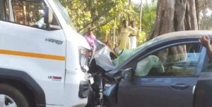ಡಿಕ್ಕಿಯ ತೀವ್ರತೆಗೆ ಕಾರು ಸಂಪೂರ್ಣವಾಗಿ ನಜ್ಜುಗುಜ್ಜಾಗಿದ್ದು, ಕಾರು ಚಾಲಕನಿಗೆ ಗಂಭೀರ ಗಾಯಗಳಾಗಿವೆ.