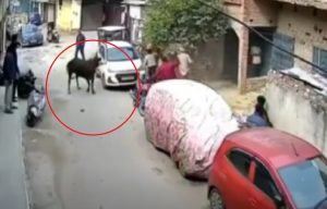 ಲಕ್ನೋ: ಬಾಲಕಿಯನ್ನು ಅಟ್ಟಾಡಿಸಿಕೊಂಡು ಬರುತ್ತಿದ್ದ ಗೂಳಿಯಿಂದ, ಬಾಲಕಿಯನ್ನು ರಕ್ಷಿಸಲು ಸ್ಥಳೀಯರು ಸಾಕಷ್ಟು ಪ್ರಯತ್ನ ಪಟ್ಟಿದ್ದಾರೆ, ಕೊನೆಗೆ ವ್ಯಕ್ತಿಯೊಬ್ಬ ಗೂಳಿಗೆ ತನ್ನ ಕೈಯಲ್ಲಿದ್ದ ಟವೆಲ್ ಬೀಸುವ ಮೂಲಕ ಬೇರೆಡೆಗೆ ಗಮನ ಸೆಳೆದು ಆಕೆಯನ್ನು ಉಳಿಸಿಕೊಂಡಿದ್ದಾರೆ.
