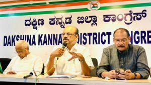 ಮಂಗಳೂರು: ಉದ್ಯೋಗ ಖಾತ್ರಿ ಯೋಜನೆಯಲ್ಲಿನ ಗಾಂಧಿ ಹೆಸರು ಕೈಬಿಟ್ಟಿದ್ದಕ್ಕೆ ದಕ್ಷಿಣ ಕನ್ನಡ ಜಿಲ್ಲಾ ಕಾಂಗ್ರೆಸ್ ನೂರು ಕಿಮೀ ದೂರ ಪಾದಯಾತ್ರೆ ನಡೆಸಲು ಮುಂದಾಗಿದೆ. ದಕ್ಷಿಣ ಕನ್ನಡ ಜಿಲ್ಲೆಯ ಗಡಿಭಾಗವಾದ ಸುಳ್ಯದ ಗಾಂಧಿ ಮೈದಾನದಿಂದ ಮೂಲ್ಕಿಯವರೆಗೆ ನಾಲ್ಕು ದಿನಗಳ ಕಾಲ ಪಾದಯಾತ್ರೆ ನಡೆಯಲಿದ್ದು ಕಾಂಗ್ರೆಸ್ ಹಿರಿ ಕಿರಿಯ ನಾಯಕರಲ್ಲದೆ ಸಾವಿರಾರು ಮಂದಿ ಕಾರ್ಯಕರ್ತರು ಪಾಲ್ಗೊಳ್ಳಲಿದ್ದಾರೆ ಎಂದು ಜಿಲ್ಲಾ ಕಾಂಗ್ರೆಸ್ ಅಧ್ಯಕ್ಷ ಹರೀಶ್ ಕುಮಾರ್ ಪತ್ರಿಕಾಗೋಷ್ಟಿಯಲ್ಲಿ ಮಾಹಿತಿ ನೀಡಿದರು.