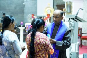 ಪವಿತ್ರ ಬಲಿಪೂಜೆಯ ನಂತರ ಪರಮಪ್ರಸಾದದ ಆರಾಧನೆ ನಡೆಯಿತು. ಈ ಸಂದರ್ಭದಲ್ಲಿ ವಿದ್ಯಾರ್ಥಿಗಳು, ಪೋಷಕರು ಮತ್ತು ಶಿಕ್ಷಕರಿಗಾಗಿ ವಿಶೇಷ ಪ್ರಾರ್ಥನೆ ಸಲ್ಲಿಸಲಾಯಿತು. ನಂತರ ಮಕ್ಕಳಿಗೆ ಪವಿತ್ರ ತೈಲದಿಂದ ಅಭಿಷೇಕ ಮಾಡಿ ಆಶೀರ್ವಾದ ನೀಡಲಾಯಿತು.