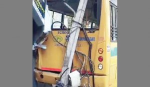 ಬೆಂಗಳೂರು: ಇಳಿಜಾರಿನಲ್ಲಿ ಖಾಸಗಿ ಶಾಲಾ ಬಸ್ಸೊಂದು ಬ್ರೇಕ್ ಫೇಲ್ ಆಗಿ ವಿದ್ಯುತ್ ಕಂಬಕ್ಕೆ ಡಿಕ್ಕಿ ಹೊಡೆದಿರುವ ಘಟನೆ ಮಹಾಲಕ್ಷ್ಮೀ ಲೇಔಟ್ನಲ್ಲಿ ನಡೆದಿದ್ದು, ಅದೃಷ್ಟವಶಾತ್ ಯಾವುದೇ ಪ್ರಾಣಹಾನಿ ಸಂಭವಿಸಿಲ್ಲ.