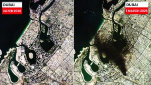ದುಬೈ: ಫೆಬ್ರವರಿ 24ರಂದು ಉಪಗ್ರಹ ತೆಗೆದ ಚಿತ್ರಗಳಲ್ಲಿ ದುಬೈ ಎಂದಿನಂತೆ ಜಗಮಗಿಸುತ್ತಿತ್ತು. ಅಚ್ಚುಕಟ್ಟಾದ ಹೆದ್ದಾರಿಗಳು, ಆಕಾಶಚುಂಬಿ ಕಟ್ಟಡಗಳು ಮತ್ತು ಸಮುದ್ರದ ನಡುವೆ ತೇಲುವಂತಿದ್ದ ಕೃತಕ ದ್ವೀಪಗಳು ಆ ನಗರದ ಐಶ್ವರ್ಯವನ್ನು ಸಾರುತ್ತಿದ್ದವು. ಆದರೆ, ಕೇವಲ ನಾಲ್ಕು ದಿನಗಳ ನಂತರ, ಮಾರ್ಚ್ 1ರಂದು ಅದೇ ಉಪಗ್ರಹ ರವಾನಿಸಿದ ಚಿತ್ರಗಳು ಇಡೀ ಜಗತ್ತನ್ನೇ ಬೆಚ್ಚಿಬೀಳಿಸಿವೆ. ಅದೇ ಮಿನುಗುವ ನಗರಿಯ ಆಕಾಶದಲ್ಲಿ ಈಗ ದಟ್ಟವಾದ, ಕರಾಳ ಕಪ್ಪು ಹೊಗೆಯ ರಾಶಿ ಏಳುತ್ತಿದೆ! ಪ್ರವಾಸಿಗರ ಸ್ವರ್ಗ, ವಲಸಿಗರ ಸುರಕ್ಷಿತ ತಾಣವೆನಿಸಿಕೊಂಡಿದ್ದ ದುಬೈ ಇದೀಗ ಆರಂಕದ ಕರಿನೆರಳಿನಲ್ಲಿದೆ.
