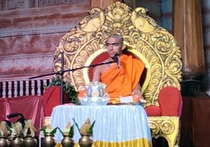 ಕಾರ್ಯಕ್ರಮದ ಸಾನಿಧ್ಯ ವಹಿಸಿದ್ದ ಚಿತ್ರಾಪುರ ಮಠದ ಶ್ರೀ ವಿದ್ಯೇಂದ್ರತೀರ್ಥ ಸ್ವಾಮೀಜಿಗಳು ಆಶೀರ್ವಚನ ನೀಡಿ, “ಸಮುದ್ರಕ್ಕೆ ಹೇಗೆ ಗಡಿ ಇಲ್ಲವೋ, ಹಾಗೆಯೇ ದೇವರಿಗೂ ಪರಿಧಿ ಇಲ್ಲ. ದೇವರ ಅಸ್ತಿತ್ವ ನಮಗೆ ಪ್ರಾರ್ಥನೆ ಮಾಡುವಾಗ ಅರಿವಾಗುತ್ತದೆ. ತಾಯಿ ಭಗವತಿಯು ಸಮುದ್ರ ತಟದಲ್ಲಿ ನೆಲೆಸಿ ನದಿ ಮತ್ತು ಸಮುದ್ರಗಳ ಮೂಲಕ ಸದಾ ದೈವ ಚಿಂತನೆ ಮಾಡುವಂತೆ ನಮಗೆ ಪ್ರೇರಣೆ ನೀಡುತ್ತಿದ್ದಾಳೆ” ಎಂದು ನುಡಿದರು.