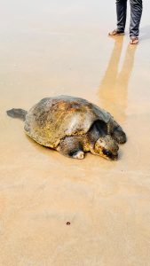 ಮೂಲ್ಕಿ: ತಾಲೂಕಿನ ಸಸಿಹಿತ್ಲು ಭಗವತೀ ದೇವಸ್ಥಾನದ ಸಮೀಪದ ಕಡಲತೀರಕ್ಕೆ ಸುಮಾರು 45 ಕೆಜಿ ತೂಕದ ಬೃಹತ್ ಕಡಲಾಮೆಯೊಂದು ಗಾಯಗೊಂಡ ಸ್ಥಿತಿಯಲ್ಲಿ ತಡಕ್ಕೆ ಬಂದಿದ್ದು, ಅರಣ್ಯ ಇಲಾಖೆ ಅಧಿಕಾರಿಗಳು ಮತ್ತು ಸ್ಥಳೀಯರ ಸಹಕಾರದೊಂದಿಗೆ ಅದನ್ನು ರಕ್ಷಿಸಲಾಗಿದೆ.
