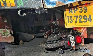ಶಿವಮೊಗ್ಗ: ಜೋಳ ತುಂಬಿದ್ದ ಲಾರಿಯ ಚಕ್ರಕ್ಕೆ ಸಿಲುಕಿ ಬೈಕ್ನಲ್ಲಿ ಬರುತ್ತಿದ್ದ ದಂಪತಿ ಮೃತಪಟ್ಟ ಘಟನೆ ಭದ್ರಾವತಿ ಗ್ರಾಮಾಂತರ ಪೊಲೀಸ್ ಠಾಣೆ ವ್ಯಾಪ್ತಿಯ ಎಚ್.ಕೆ.ಜಂಕ್ಷನ್ ಬಳಿ ನಡೆದಿದೆ.