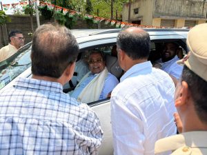 ದಾವಣಗೆರೆ: ದಾವಣಗೆರೆ ದಕ್ಷಿಣ ವಿಧಾನಸಭಾ ಕ್ಷೇತ್ರದ ಉಪಚುನಾವಣೆಯ ಹಿನ್ನೆಲೆಯಲ್ಲಿ ಪ್ರಚಾರ ಸಭೆ, ರೋಡ್ ಶೋನಲ್ಲಿ ಪಾಲ್ಗೊಳ್ಳಲು ಆಗಮಿಸಿದ್ದ ಮುಖ್ಯಮಂತ್ರಿ ಸಿದ್ದರಾಮಯ್ಯ ಅವರನ್ನು ಚುನಾವಣೆ ಮೇಲುಸ್ತುವಾರಿಯಾಗಿರುವ ವಿಧಾನ ಪರಿಷತ್ ಶಾಸಕರು ಹಾಗೂ ಕೆಪಿಸಿಸಿ ಕಾರ್ಯಾಧ್ಯಕ್ಷರಾದ ಮಂಜುನಾಥ ಭಂಡಾರಿಯವರು ಗೌರವಪೂರ್ವಕವಾಗಿ ಬೀಳ್ಕೊಟ್ಟರು.