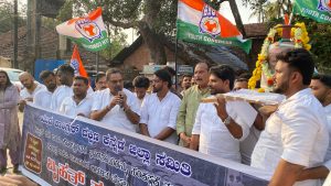 ಪ್ರತಿಭಟನೆಯ ಭಾಗವಾಗಿ ಕಾಂಗ್ರೆಸ್ ಕಾರ್ಯಕರ್ತರು ಖಾಲಿ ಗ್ಯಾಸ್ ಸಿಲಿಂಡರ್ಗೆ ಹೂಮಾಲೆ ಹಾಕಿ ಅದಕ್ಕೆ ಮೋದಿ ಭಾವಚಿತ್ರ ಅಂಟಿಸಿ, ಅದನ್ನು ಚಟ್ಟದ ಮೇಲೆ ಕಟ್ಟಿ ಹೊತ್ತುಕೊಂಡು ಸಾಗುವ ಮೂಲಕ ‘ಅಣಕು ಶವಯಾತ್ರೆ’ ನಡೆಸಿದರು.