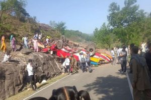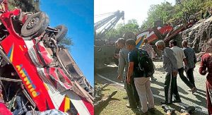 ಉಧಂಪುರ: ರಾಮನಗರದಿಂದ ಉಧಂಪುರಕ್ಕೆ ತೆರಳುತ್ತಿದ್ದ ಬಸ್, ತಿರುವೊಂದರಲ್ಲಿ ಚಾಲಕನ ನಿಯಂತ್ರಣ ತಪ್ಪಿ ಪಲ್ಟಿಯಾಗಿ ಬೆಟ್ಟದ ಕೆಳಗೆ ಉರುಳಿ ಬಿದ್ದ ಘಟನೆ ಜಮ್ಮು ಮತ್ತು ಕಾಶ್ಮೀರದ ಉಧಂಪುರ ಜಿಲ್ಲೆಯಲ್ಲಿ ಸೋಮವಾರ(ಏ.20) ಬೆಳಿಗ್ಗೆ ಸುಮಾರು 10 ಗಂಟೆಯ ಸುಮಾರಿಗೆ ನಡೆದಿದ್ದು, ಅಪಘಾತದಲ್ಲಿ ಕನಿಷ್ಠ 15 ಪ್ರಯಾಣಿಕರು ಸಾವನ್ನಪ್ಪಿದ್ದಾರೆ ಮತ್ತು ಹಲವರು ಗಂಭೀರವಾಗಿ ಗಾಯಗೊಂಡಿದ್ದಾರೆ.