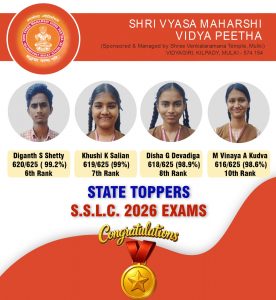 ಮೂಲ್ಕಿ: 2025 -26ನೇ ಸಾಲಿನ ಎಸ್.ಎಸ್.ಎಲ್.ಸಿ ಪರೀಕ್ಷೆಯಲ್ಲಿ ಶ್ರೀ ವ್ಯಾಸ ಮಹರ್ಷಿ ವಿದ್ಯಾ ಪೀಠ, ಕಿಲ್ಪಾಡಿ,ಮೂಲ್ಕಿ ಇಲ್ಲಿನ ವಿದ್ಯಾರ್ಥಿ ದಿಗಂತ್ ಎಸ್.ಶೆಟ್ಟಿ ಇವರು 99.2℅ ಅಂಕಗಳನ್ನು ಪಡೆದು ಅತ್ಯುನ್ನತ ಶ್ರೇಣಿಯಲ್ಲಿ ಉತ್ತೀರ್ಣರಾಗಿ 6 ನೇ ರ್ಯಾಂಕ್ ಪಡೆದು ತೋಕೂರು ಎಂಬ ಸಣ್ಣ ಗ್ರಾಮದ ಹೆಸರನ್ನು ರಾಜ್ಯಕ್ಕೆ ಪಸರಿಸಿದ್ದಾರೆ.